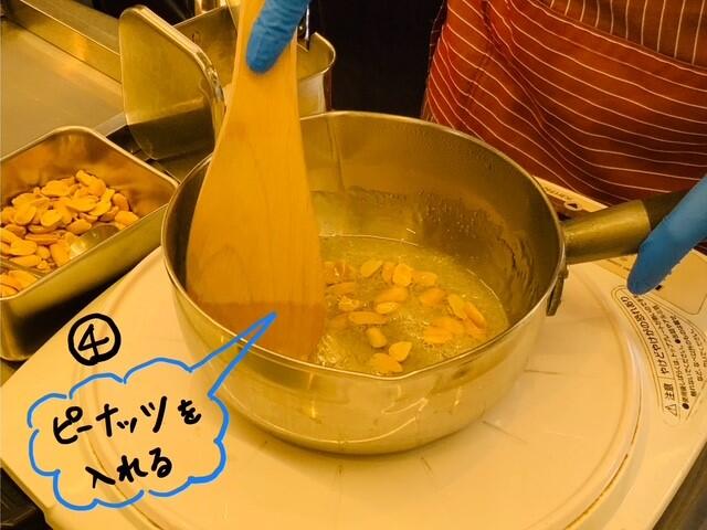 ①まず、おこし種を固めるための「蜜」を作ります。水飴に砂糖を入れます。