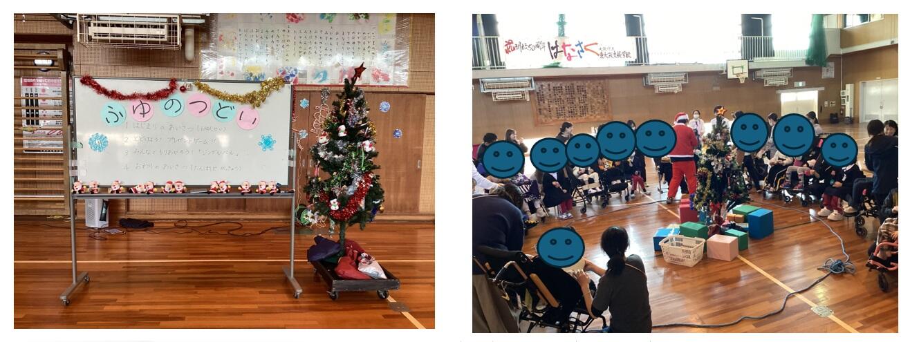 12月17日(水)小学部で冬のつどいを通して、東大阪市立石切小学校のたんぽぽ学級の児童3名との交流を行いました。