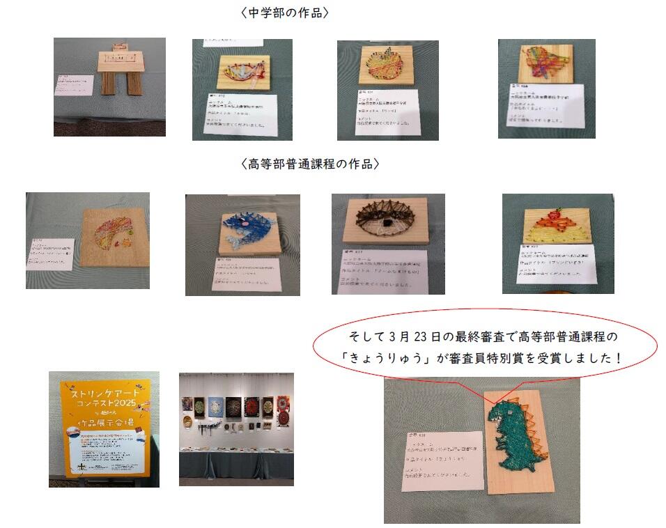 その作品をコンテストに出品すると、なんと中学部から4作品、普通課程から5作品の合計9作品が1次審査を通過しました! 作品は、大阪府東大阪市本庁舎内22階市民ギャラリーに展示されています。