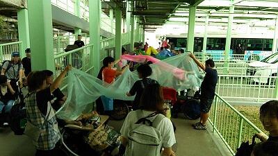 A部門高等部3年生、今日から2泊3日の修学旅行です。 A部門のみんなに「いってらっしゃーい♪」と見送られて、通学バスで新大阪駅へ向かいます。朝は、雷雨でしたが、新大阪に着くころには、雨もあがりました。 新幹線に乗り、広島へ行ってきます。