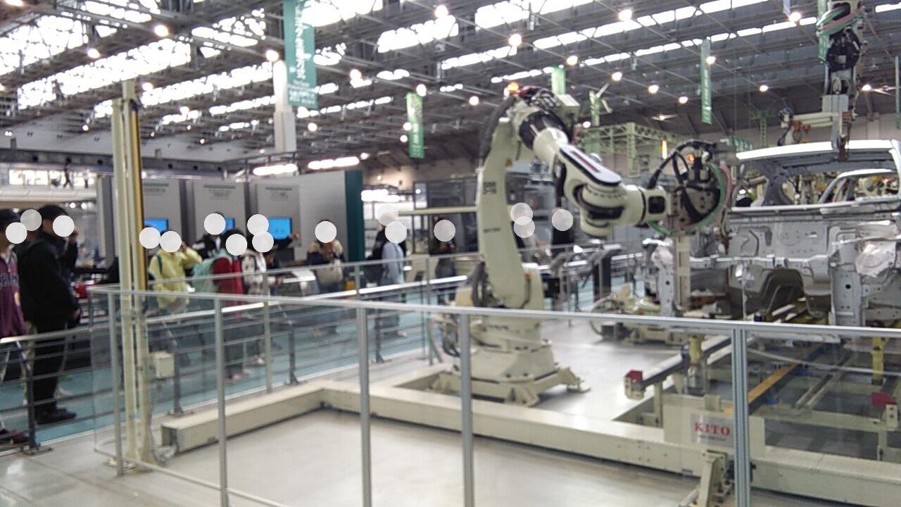 ロボットアームが車を組み立てる様子にみんな釘付けでした。