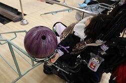 その後はボウリングをしました。ボールを押し、うまく転がると、その行方もよく見て楽しんでいました。