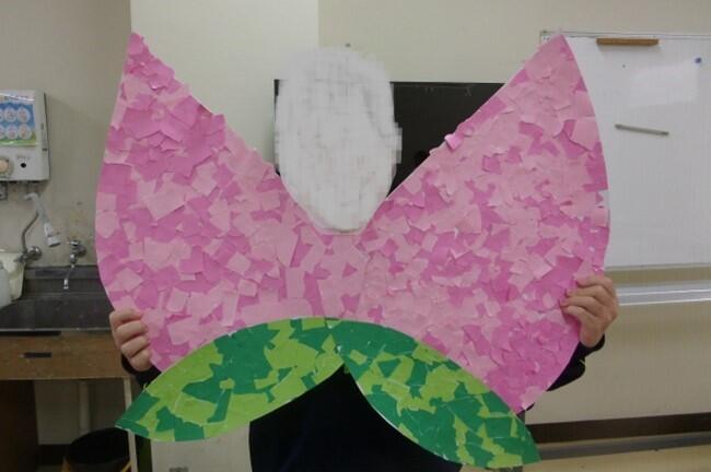 2学期は文化祭の劇「新・桃太郎」に合わせて、大きな"もものパネル"を制作しました。