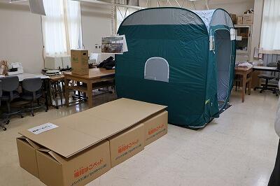 12月3日にPTA主催(大阪府医療的ケア児支援センター協賛)で防災フェスタがありました。防災の星からやってきた「防災マン」が、さまざまな災害の対応について話をしました。その後、みんなで防災音頭を踊って各ブースを体験しました。