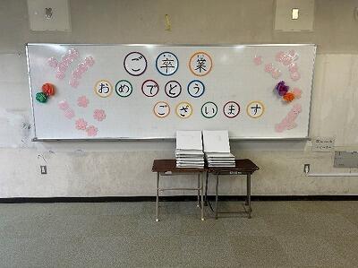 卒業式前日、小学部の先生たちで教室の装飾を行いました。