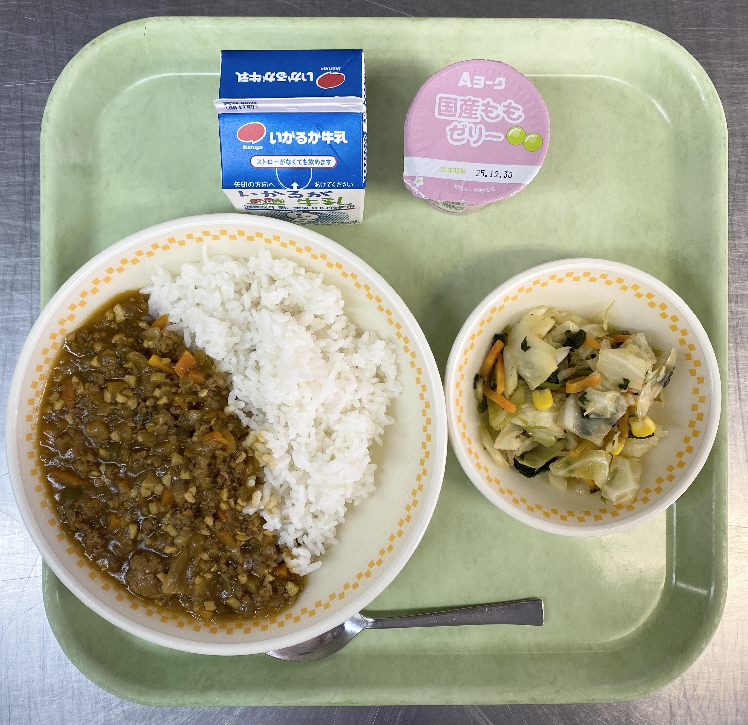 ごはん キーマカレー ほうれんそうとキャベツのサラダ ももぜりー |