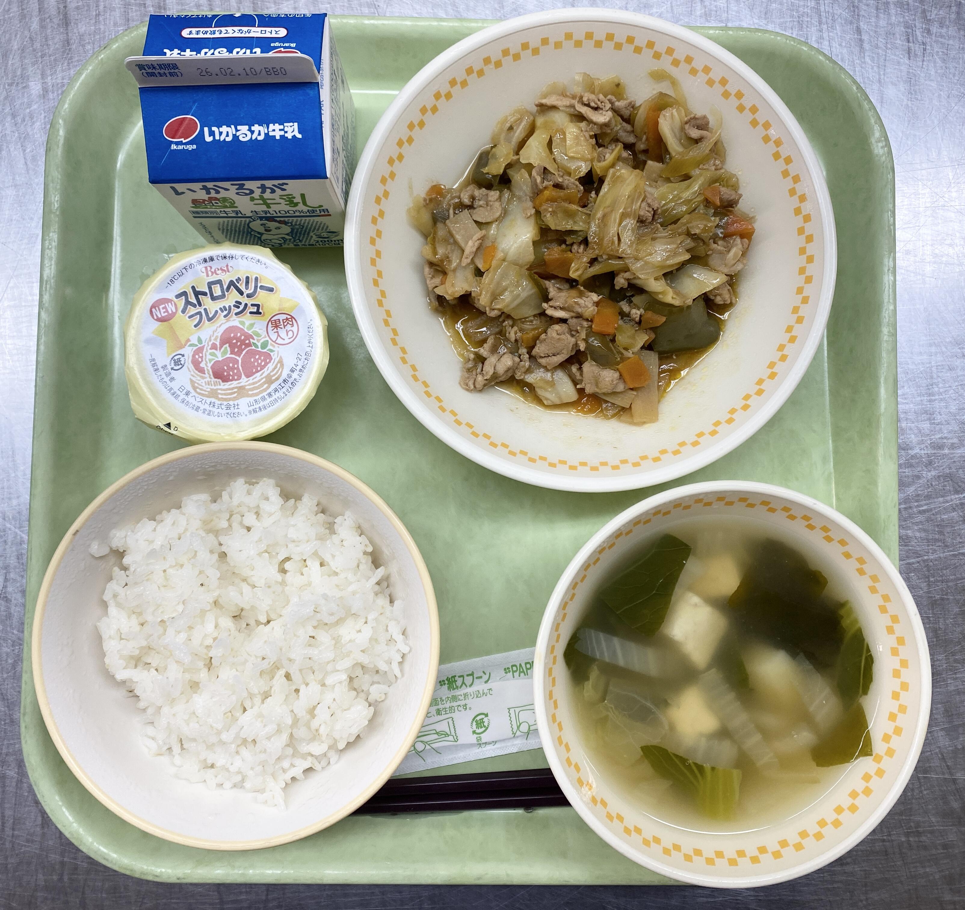 ごはん ホイコーロー ちゅうかスープ いちごゼリー |