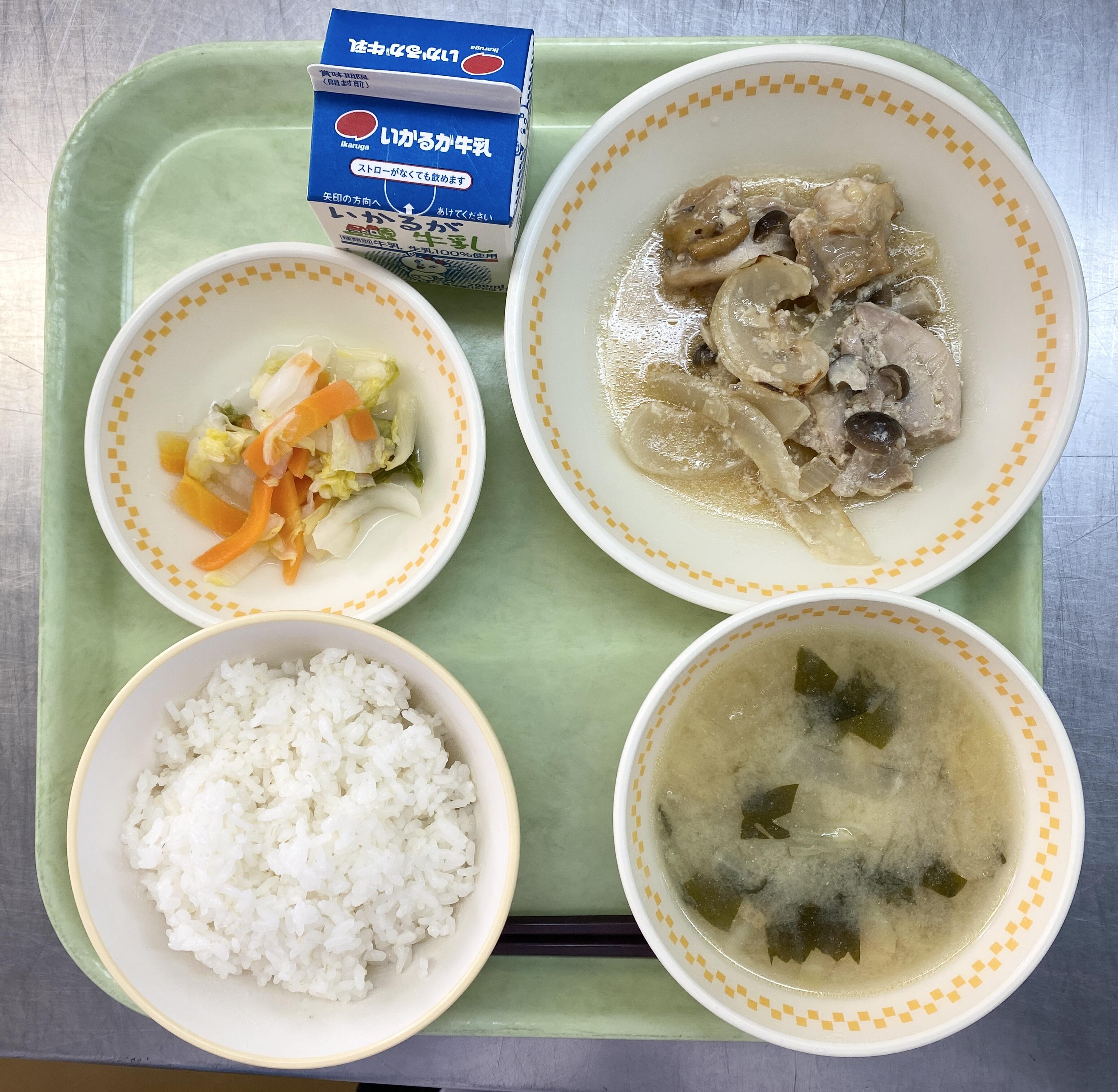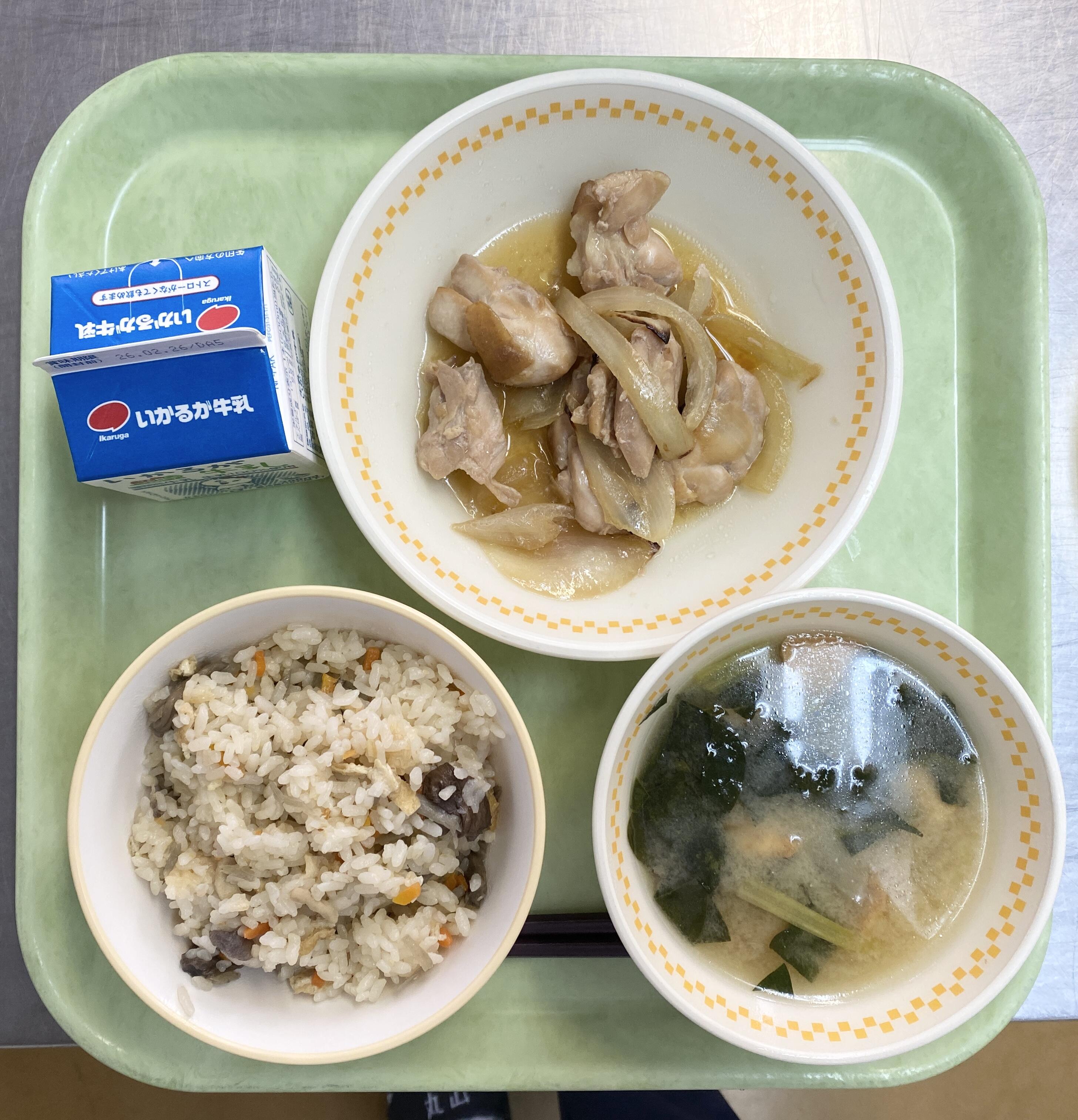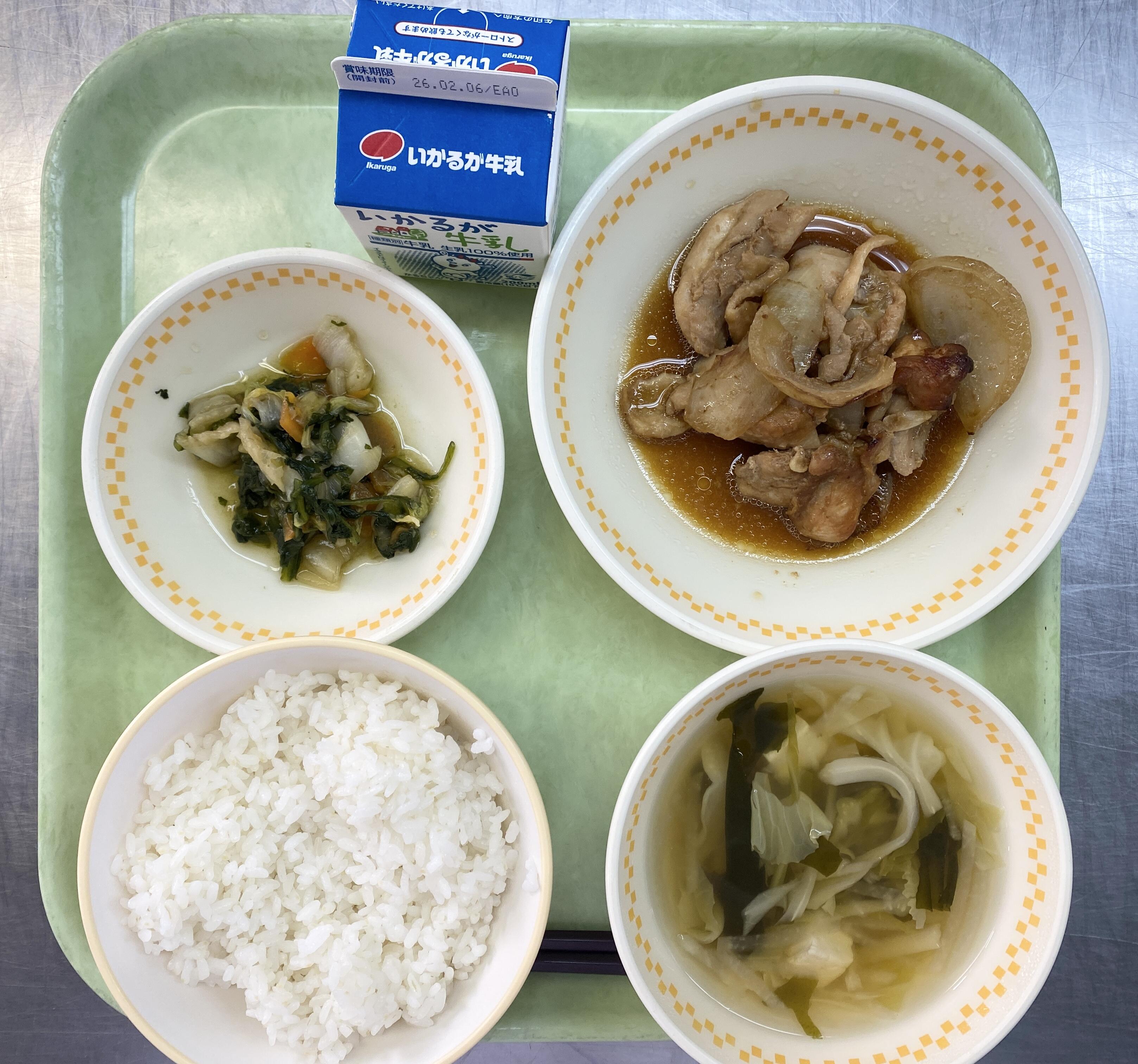 ごはん とりにくのみそやき しゅんぎくのあえもの キャベツのすましじる |