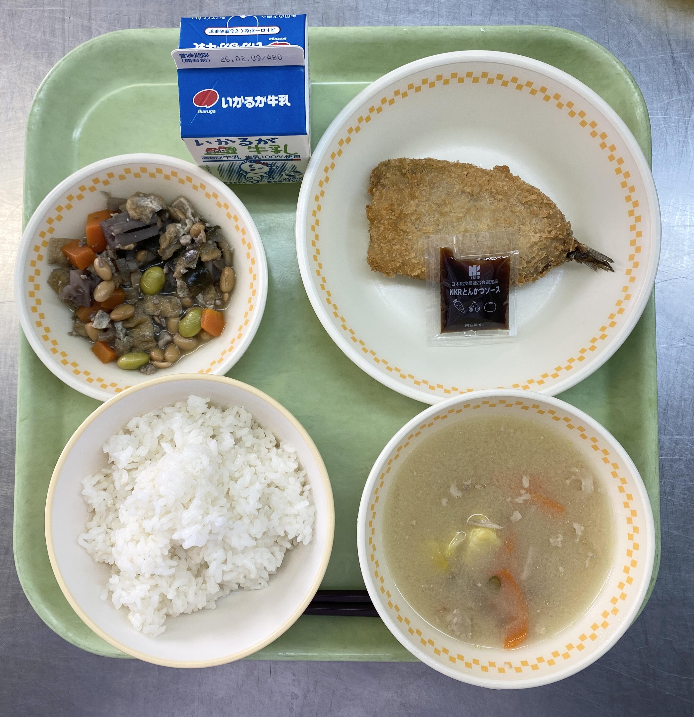 ごはん いわしフライ ななもくまめ とんじる |