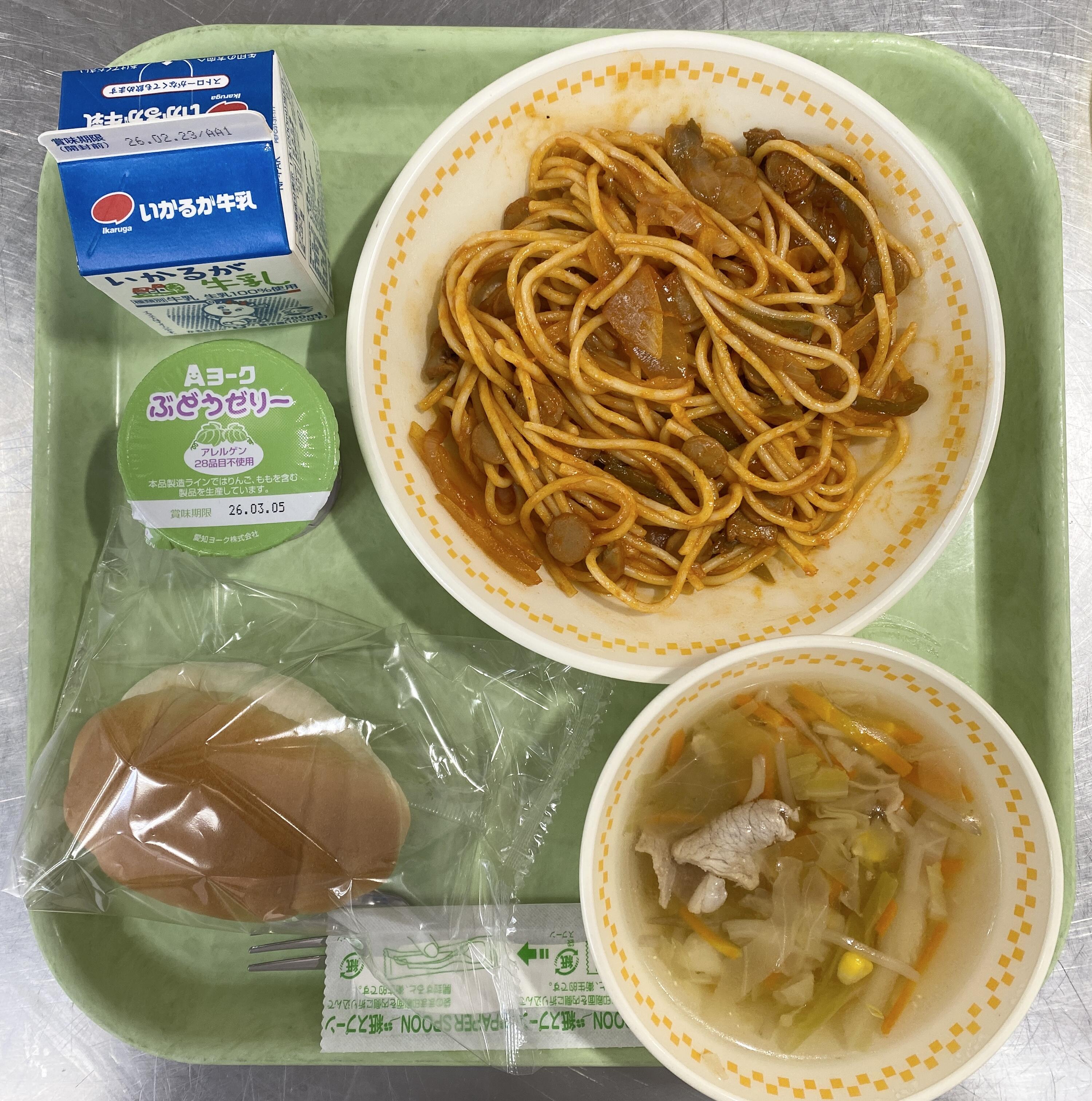 ミニコッペパン ナポリタン コンソメスープ ぶどうゼリー |