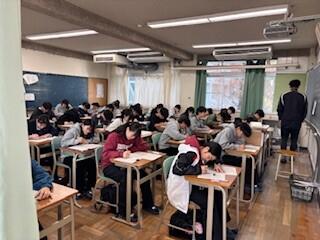 初日の今日は全学年普通科、芸能文化科とも'国語'でスタート。教室をうかがうと真剣に答案用紙に向かう生徒の皆さんを見ることができます。クリスマスとお正月を気持ちよく迎えるためにも、しっかり頑張って実力を発揮してほしいと思います。