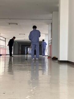 12月9日(火)~11日(木)の3日間、共生推進教室の1年生が、本校(=なにわ高等支援学校)で実施された「作業実習」に参加してきました。自らの適性や課題について考え、就労に対する態度や心構えなどの基礎を養うことが目的で、作業内容は、教室、廊下の床清掃や窓ふき、校外でのゴミ拾い等の清掃業務でした。各日とも作業後は片付け・自己評価とともに実習ノートを記入し、1日の振り返りを行いました。