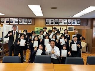 4月27日(月)昼休み、先週の前期生徒会役員選挙で当選した皆さんに"認証状"を手交する「認証式」を校長室にて行いました。