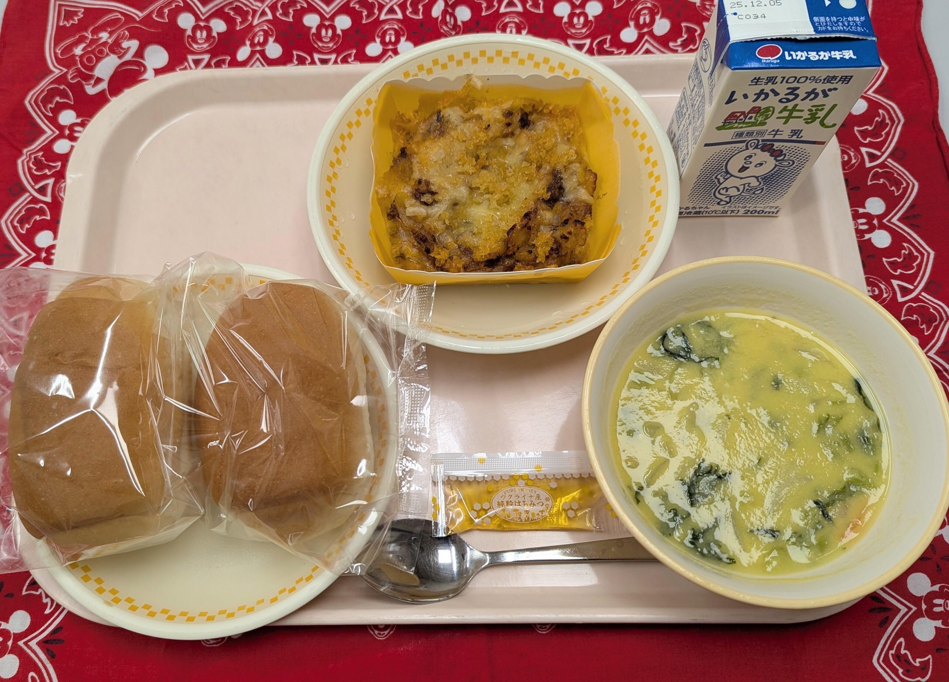 | 11月27日.jpg | 木 | クレセントロールパン、はちみつ、じゃがいものミートグラタン、こまつなコーンスープ、ぎゅうにゅう |