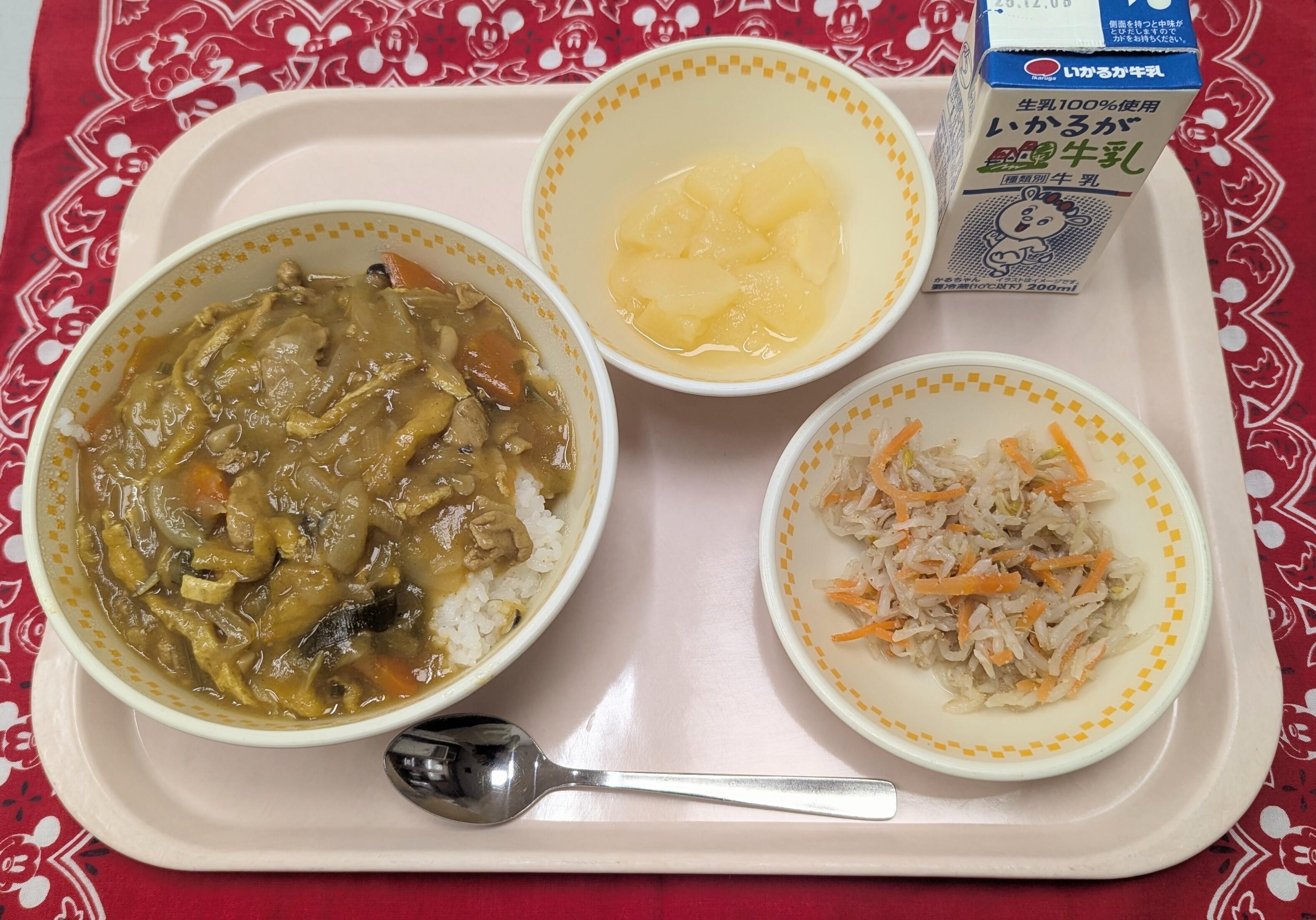 | 11月28日.jpg | 金 | わふうカレーどんぶり、もやしのごまずあえ、ようなし(かんづめ)、ぎゅうにゅう |