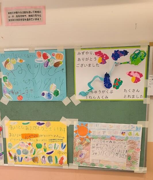 夏休み期間中、地域のグリーンボランティアの方に、学校の畑の水やりを行っていただきました。