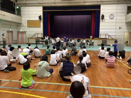 10月3日(金)の午後、淡路中学校吹奏楽部の皆さんを本校アリーナ1にお招きして、交流演奏会を行いました。