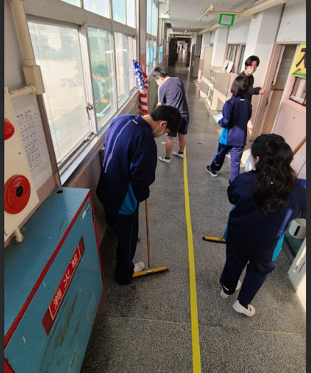 今朝、廊下を歩いていると、生徒が自主的に掃き掃除をしていました。