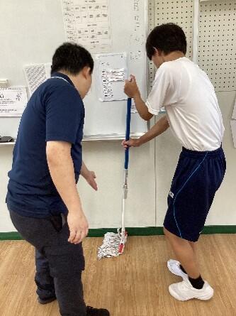 実際に会社で行われている、清掃の手順を教わり、普段より丁寧かつ、きれいに清掃することができました。