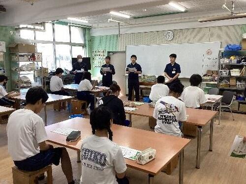 高等部1年生C・Dグループの生徒を対象に、「株式会社かんでんエルハート」様に来校していただき、机拭き清掃と水拭きモップを使用した床清掃の授業を行いました。