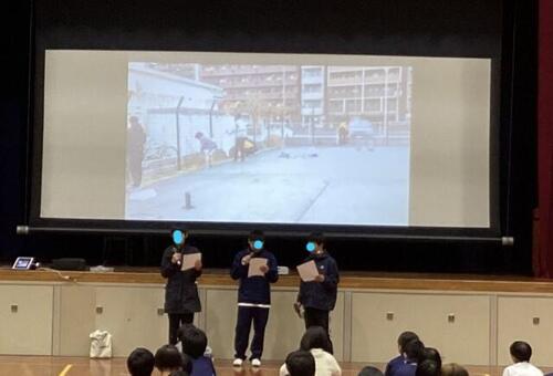 12月15日(月)2限目に中学部集会がありました。内容は生徒会、学級委員会の清掃活動の報告やC班の音楽発表でした。清掃活動の報告は生徒会・学級委員会の生徒ががんばって清掃している様子を写真で見たり、感想を発表したりして分かりやすく報告することができました!音楽発表は「大地讃頌」をソプラノとテノールの二部合唱でした。2学期音楽の授業でがんばって練習してきた成果を十分に発揮し、大きな美しい声で歌うことができていました!