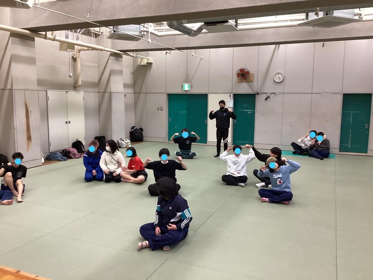 第12回目のトレーニング部では、有名なアニメソングに合わせて全身・胸・腹筋を動かすウォームアップからスタートしました。