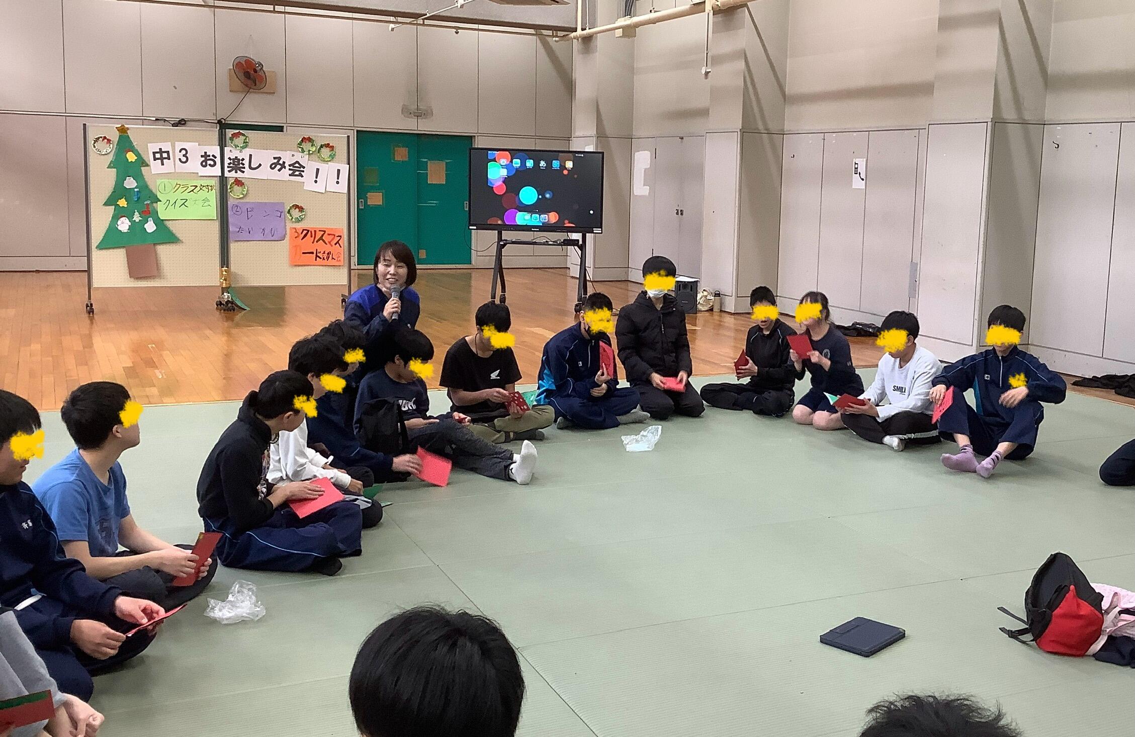 学級委員長さんたちのがんばりで、中3みんなで最高に盛り上がったお楽しみ会でした。また、こんな楽しい会をしたいですね!そして学級委員長さんたち、おつかれさまでした!