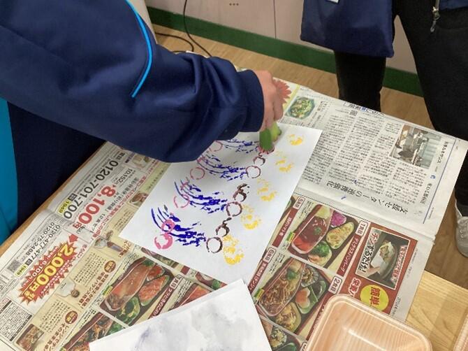 生徒たちは好きな野菜を選んで思い思いの色を使いながら紙の上にスタンプを押していき、断面の形を生かした鮮やかで美しい模様がたくさん生まれていました。