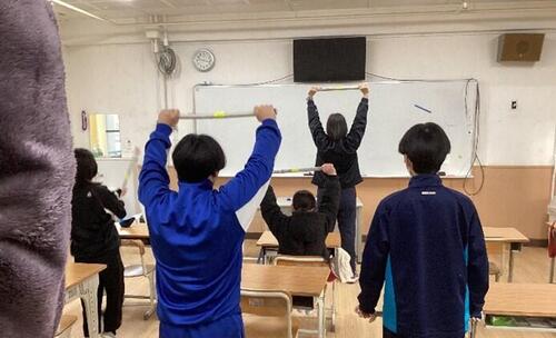 高等部2年生の自立活動の様子です。自立活動の前半はランニングを行っています。自分のペースで走りながら、体力づくりを行っています。走り終えたあとは、集団での活動や個別の課題に取り組んでいます。子どもたちは、それぞれの目標に向かって活動を行っています。継続する中で体力面・精神面の成長が感じられます。
