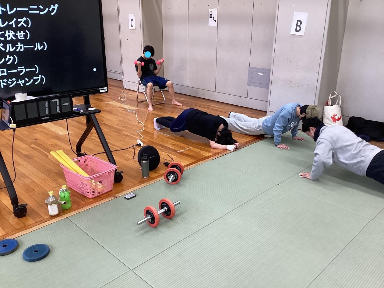 後半はウエイトトレーニングにも取り組み、それぞれが自分の限界に向き合いました。