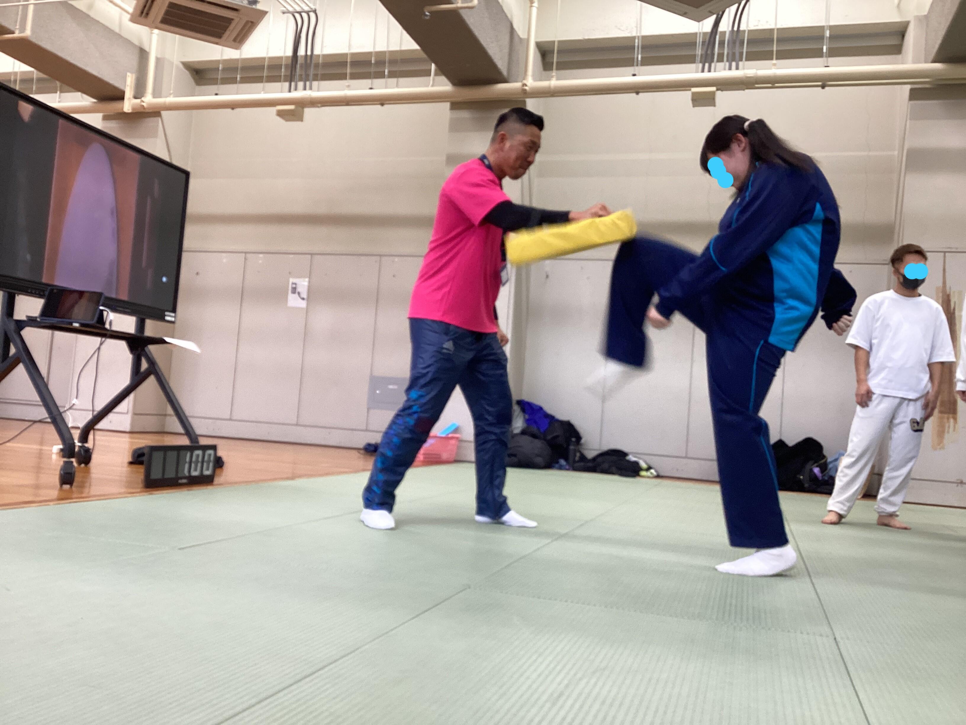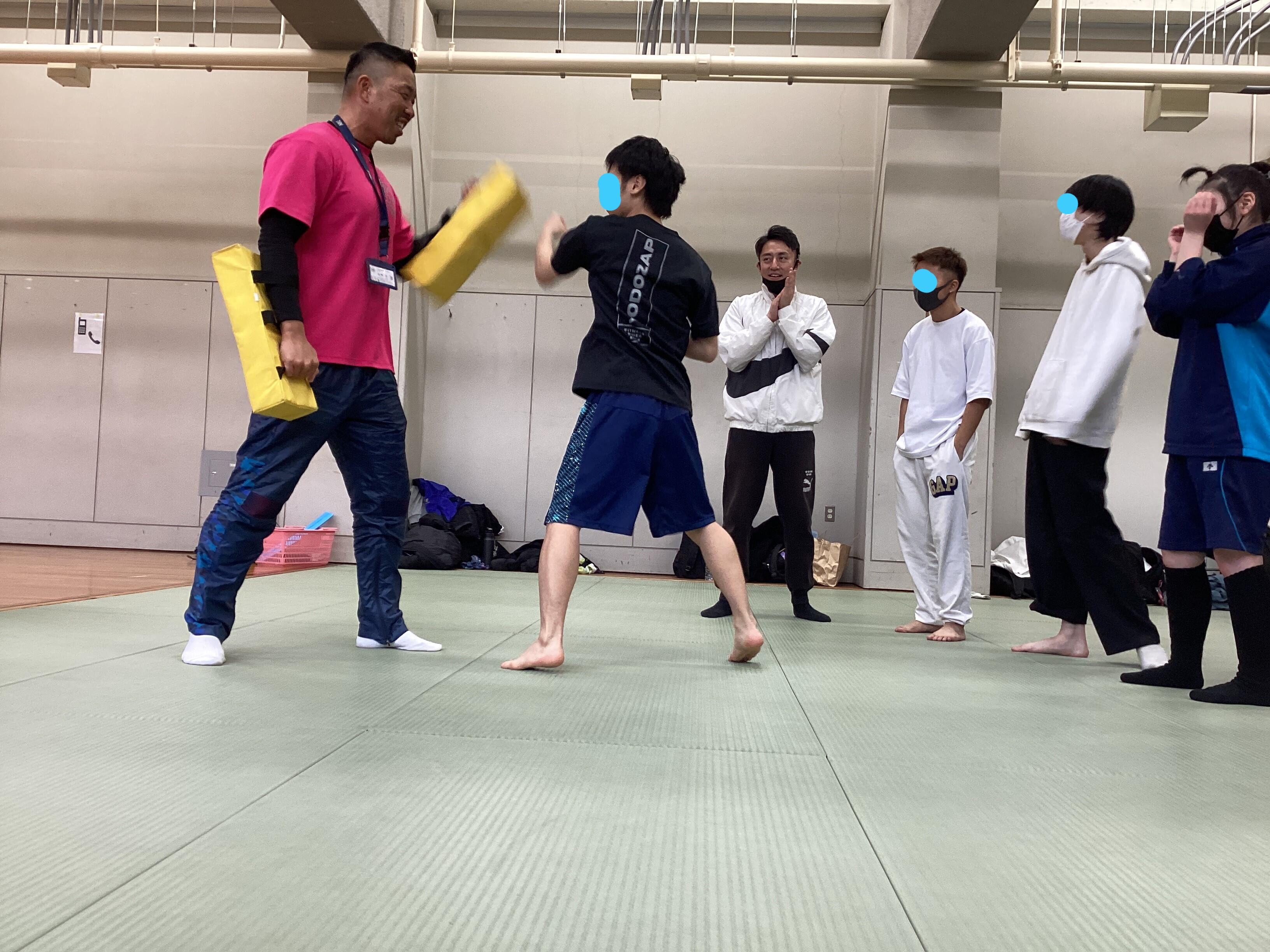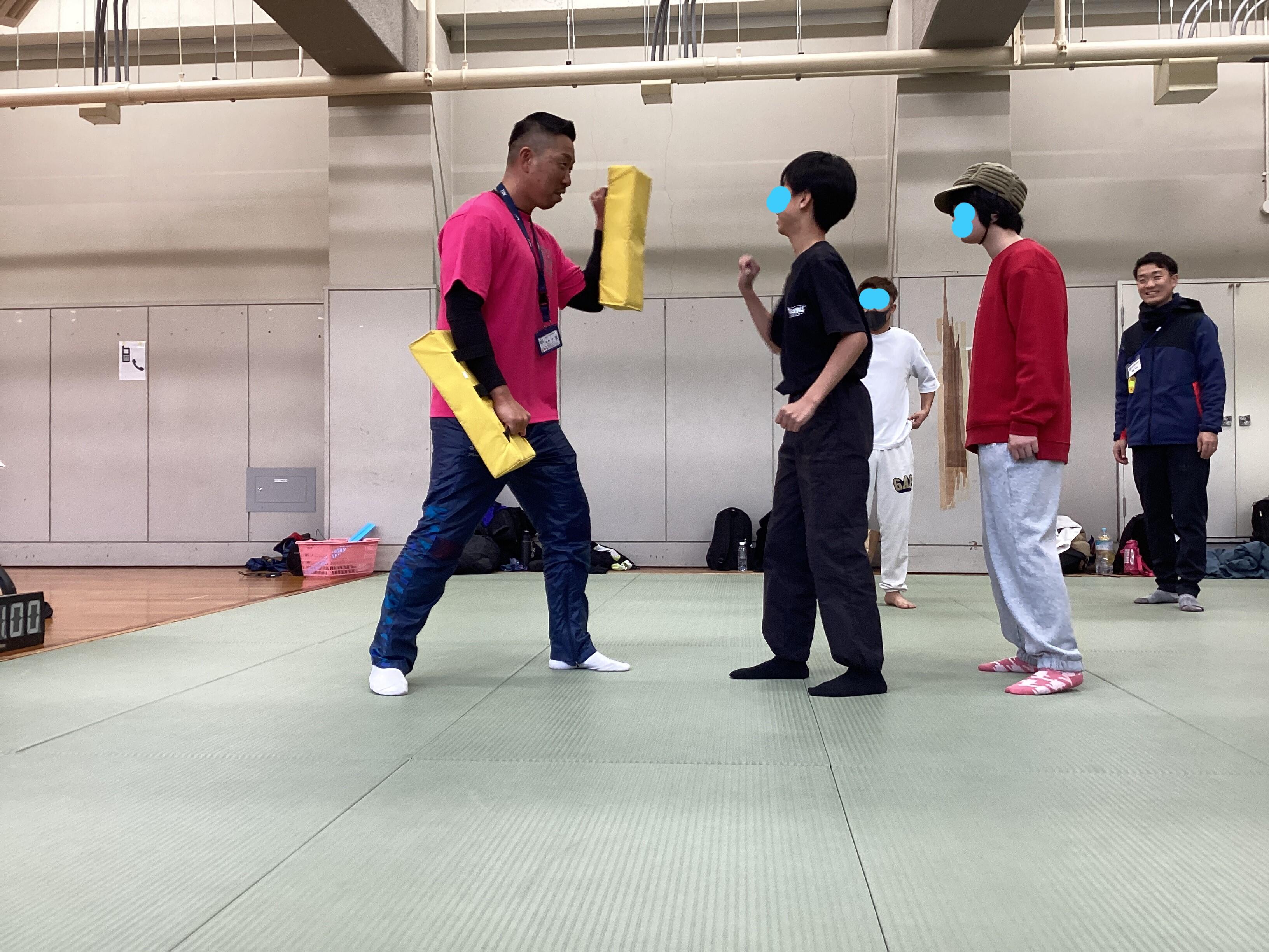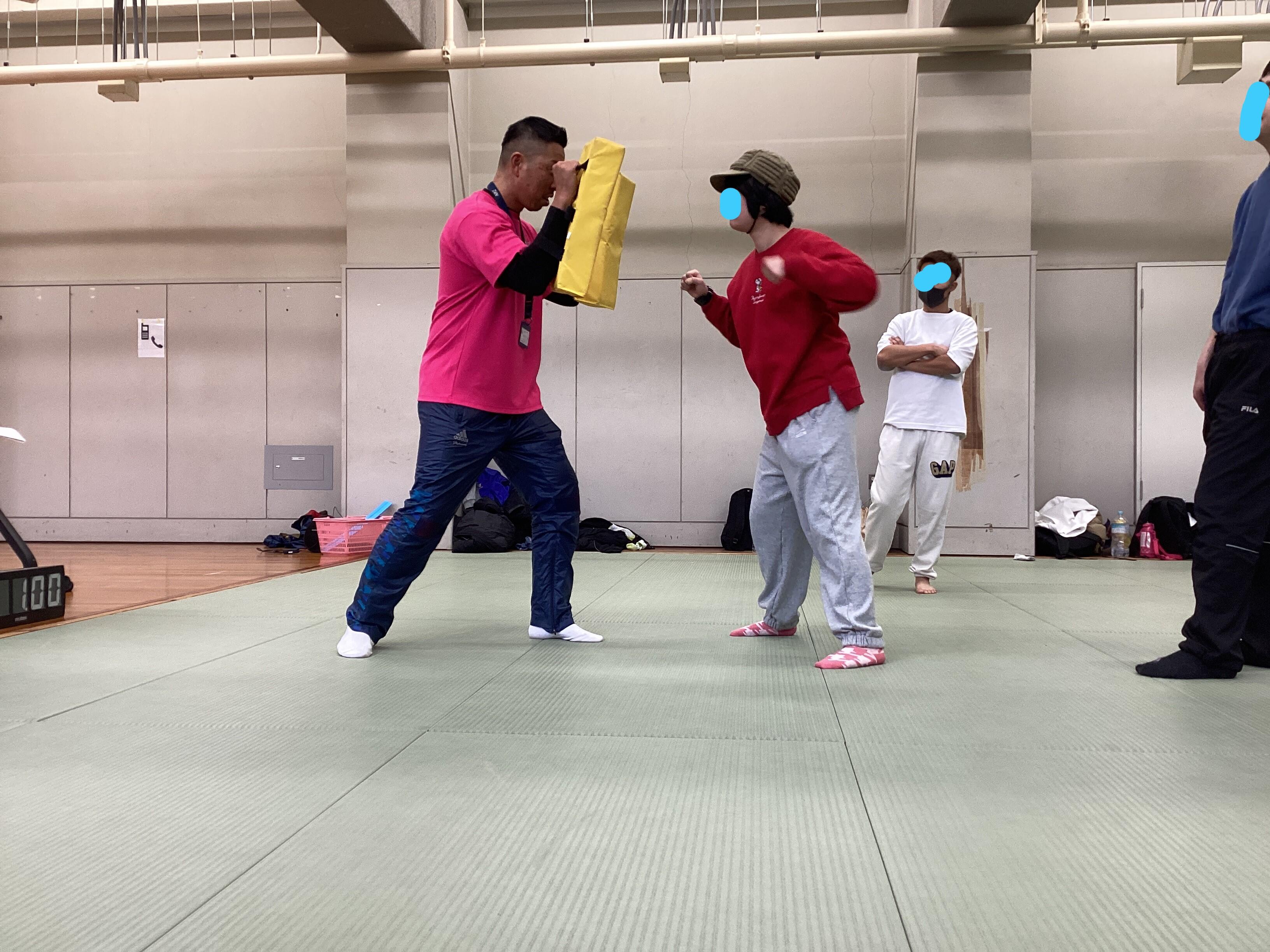 全身のウォームアップでしっかり体を温めたあとは、ボディコンバットからのミット打ち。鋭いパンチと力強いキック、響き渡る掛け声に、みんなの本気が表れていました。