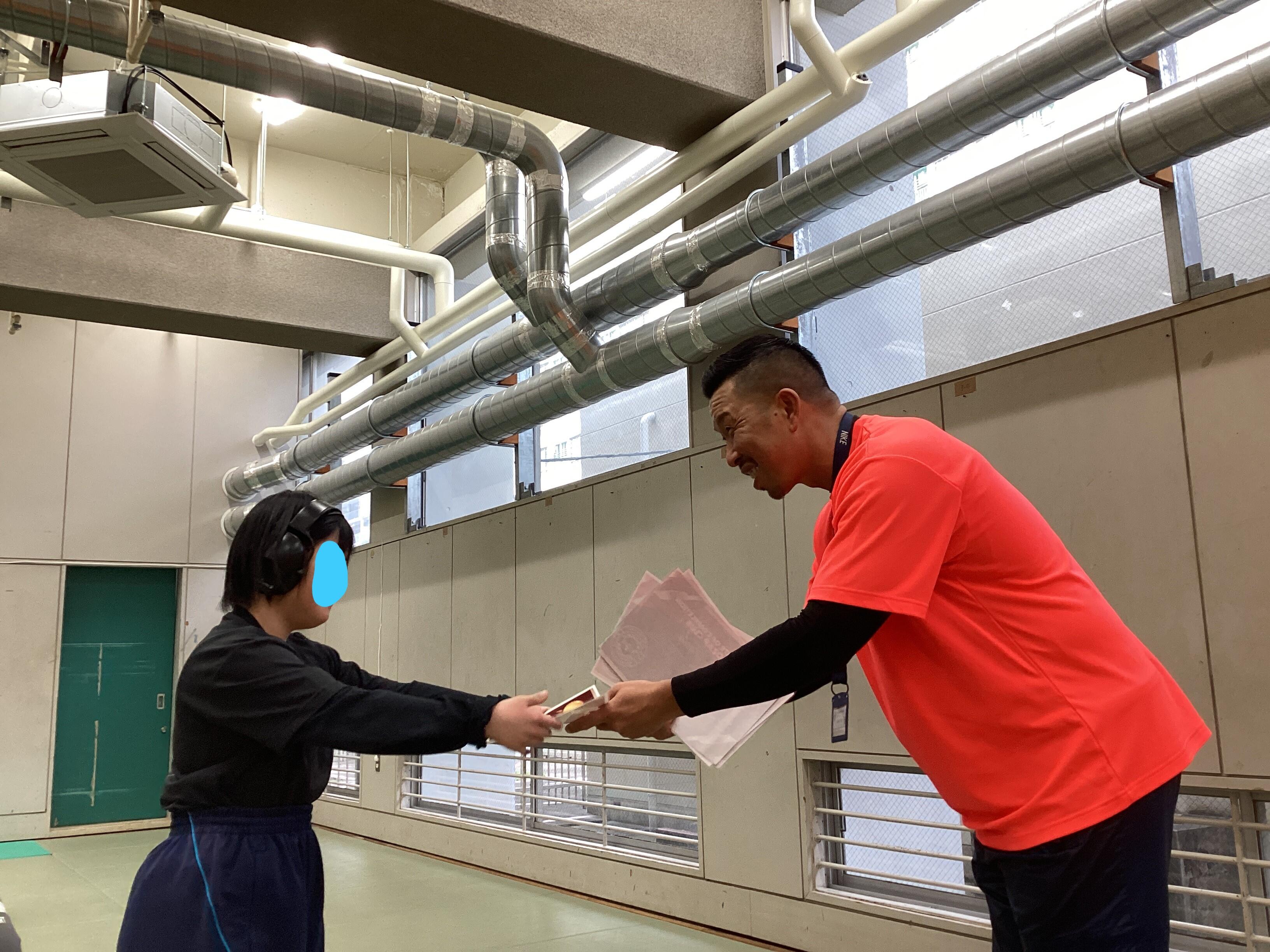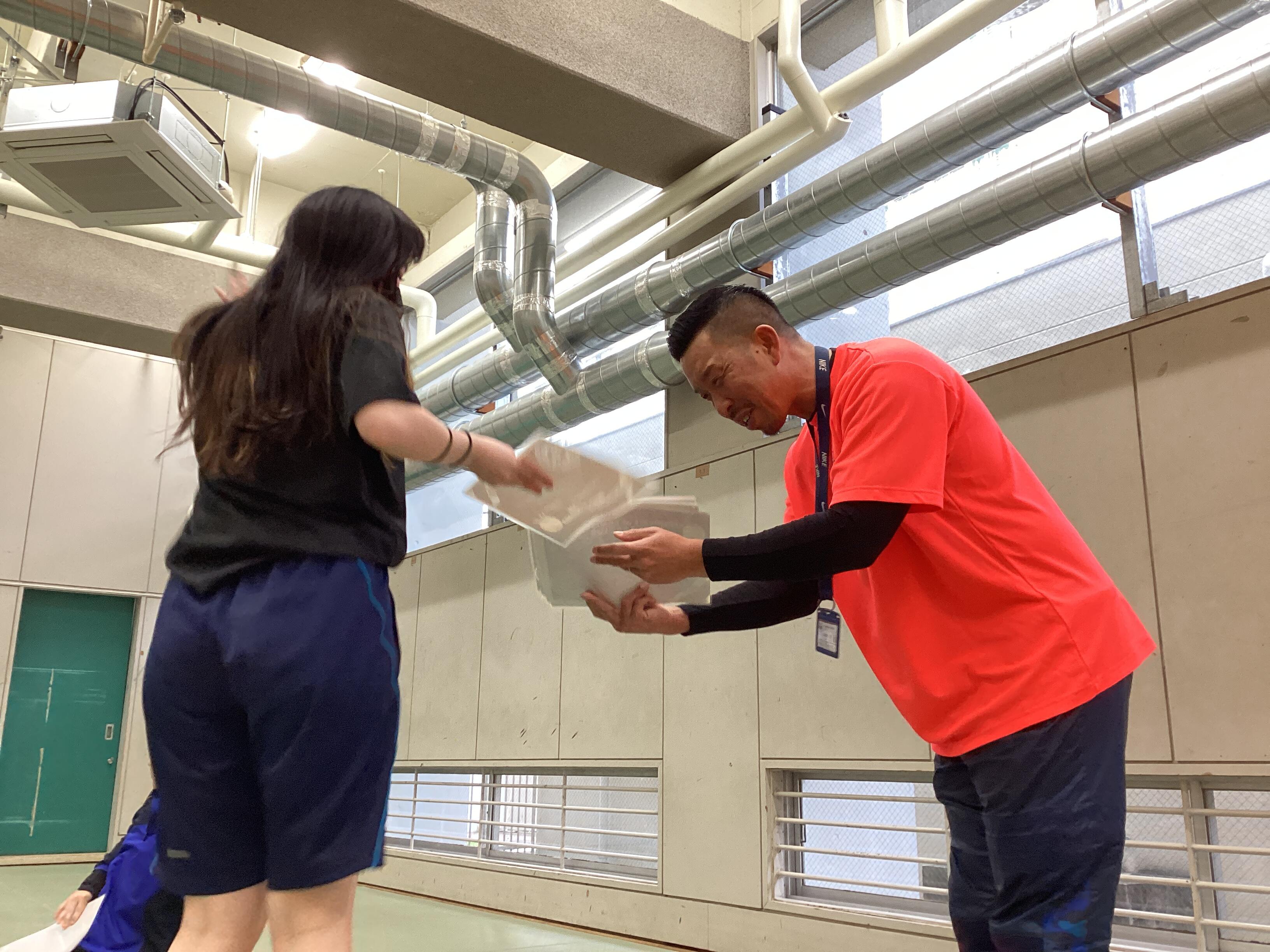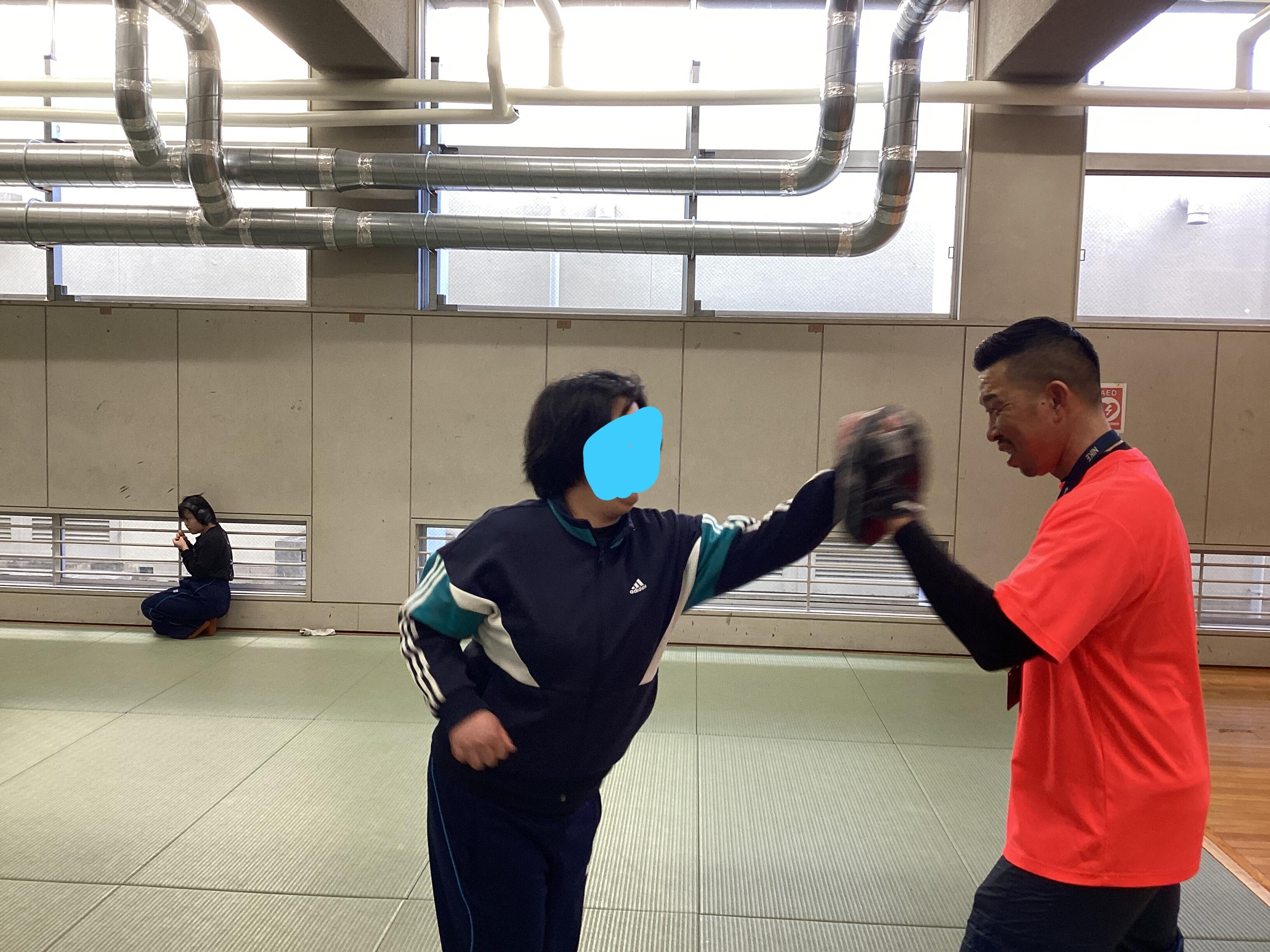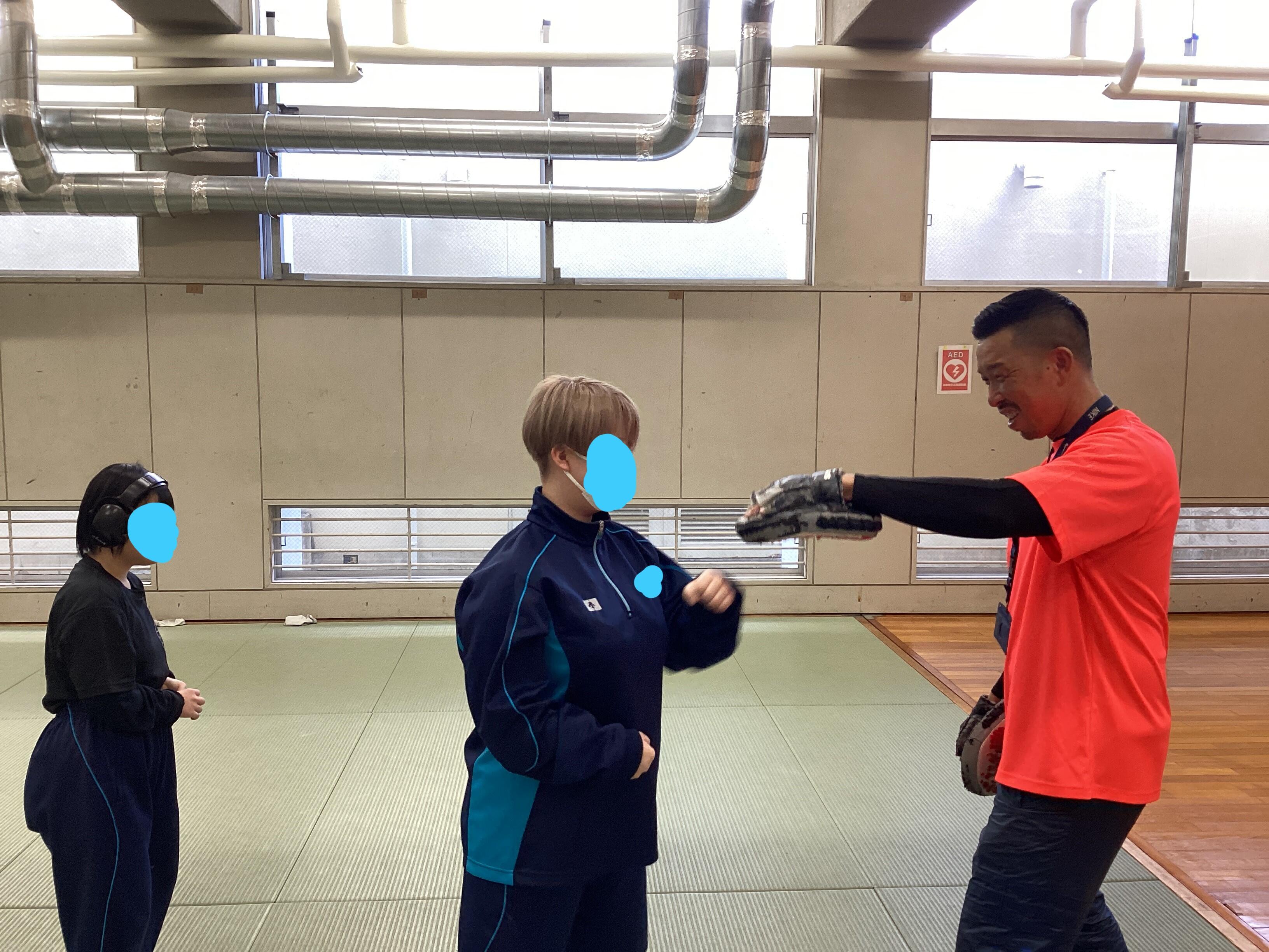 軽快なフットワークからのミット打ちでは、力強い音が体育館に響きました。