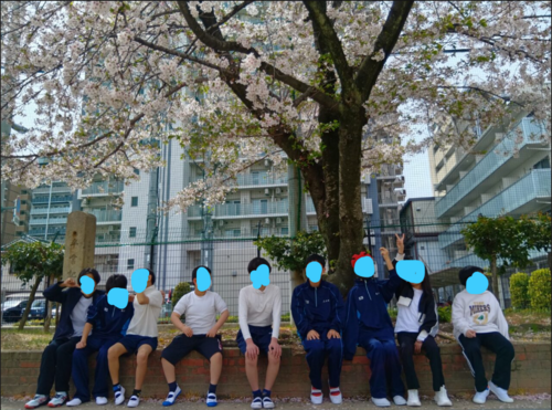 青空の下、きれいに咲いた桜の木の下で写真撮影を行いました。