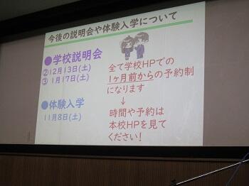 9月20日(土)午前、本校にて第1回学校説明会を開催しました。 事前申込のうえ、300名を超える生徒・保護者の皆様にご来校いただき、誠にありがとうございました。