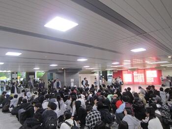 初日は7:40~8:00に新大阪駅へ集合。多くの生徒が余裕をもって集まり、スムーズなスタートとなりました。新幹線で博多駅へ向かう車内では、仲間との会話や笑顔があふれ、楽しい時間を過ごしている様子が見られました。