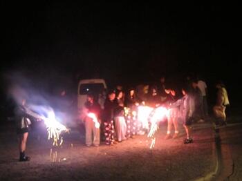 夕食後にはクラスごとに花火を行い、楽しいひと時を過ごしました。大阪ではなかなか見られない満天の星に、「すごい!」「めっちゃキレイ!」と感動の声も聞こえてきました。