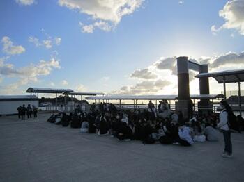 ハウステンボスを後にし、最後の宿泊地「稲佐山観光ホテル」へ。到着後、荷物整理もほどほどに、多くの生徒が屋上の展望台に向かいました。「世界新三大夜景」に選ばれた、1000万ドルの美しい景色に心を奪われてしまいました。