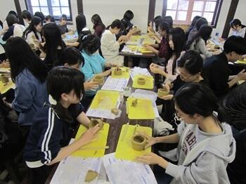 今日は、お世話になった壱岐の民宿とお別れし、九州本土に戻るところから始まりました。行きと同様、ジェットフォイルに乗船し博多港へ。到着後はバスに乗り換え、佐賀県の「有田ポーセリンパーク」へ向かいました。先生方と一緒に有田焼陶芸体験を楽しみ、それぞれ個性あふれる作品が完成しました。焼き上がりがとても楽しみです。