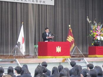 そのうえで、「高い志を持つこと」「失敗を恐れず、さまざまなことに挑戦すること」を、東淀川高校での学校生活の軸としてほしいと話しました。