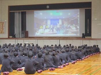 はじめに、生徒会から高校生活を紹介する動画が上映され、新入生は真剣な表情で見入っていました。