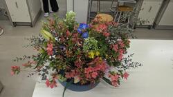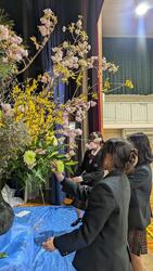 4月10日、1回目のお稽古は、見学に来てくれた一年生と入学式の壇上花を生け替えました。2,3階のフロアに飾っています。新しい学年が始まり、慣れないことも多いと思います。お花を観て、ほっと一息ついてください。