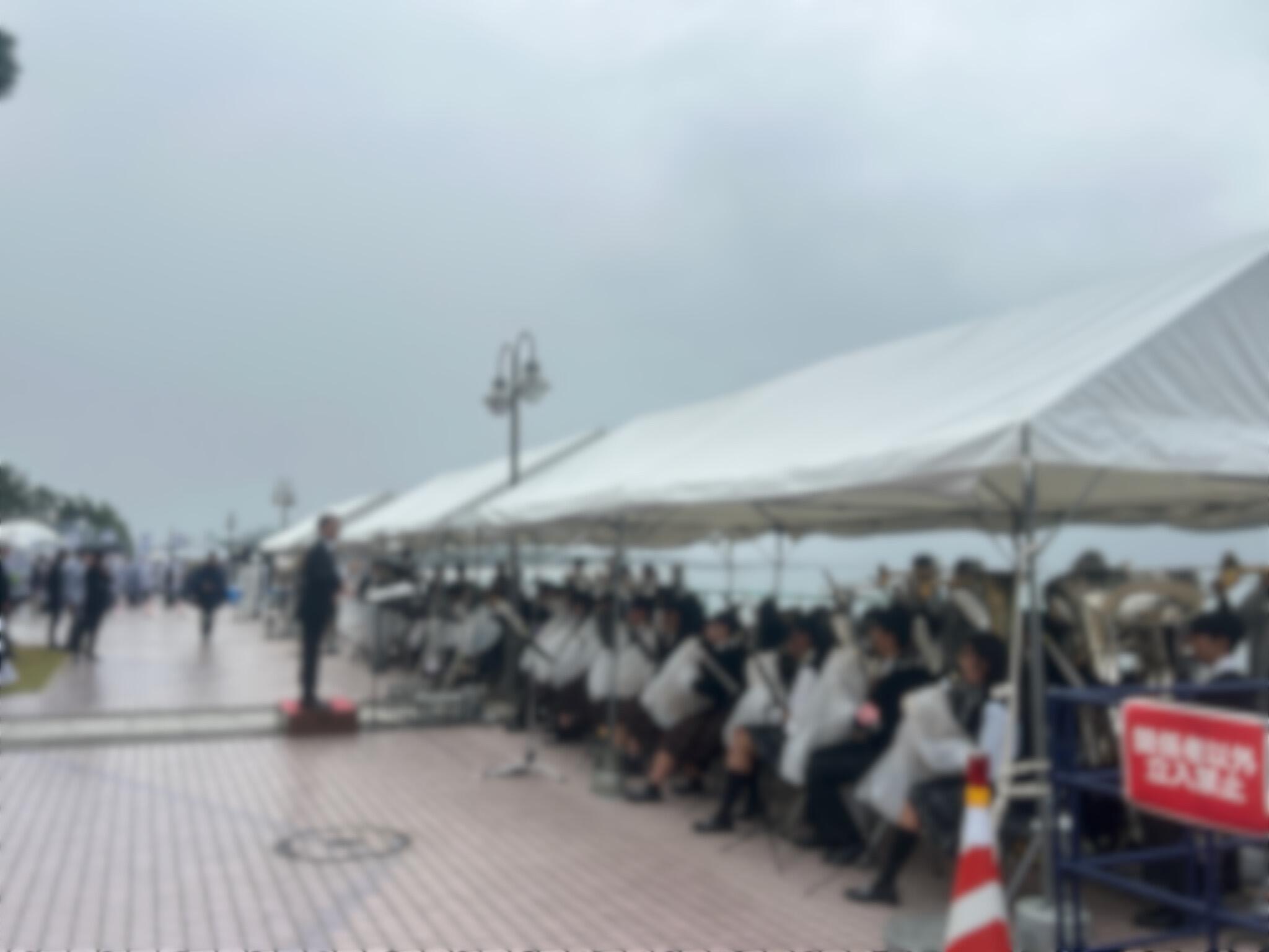 佐野高校吹奏楽部・通称「はとすい」と日根野高校吹奏楽部・通称「ひねすい」が合同で歓迎演奏をしました。
