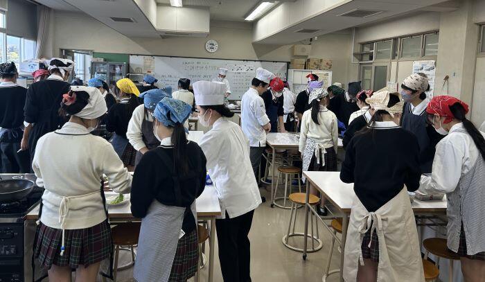 先週は辻調理師専門学校から特別講師の方に来ていただいて、家庭科の調理実習の授業を指導していただいていました。