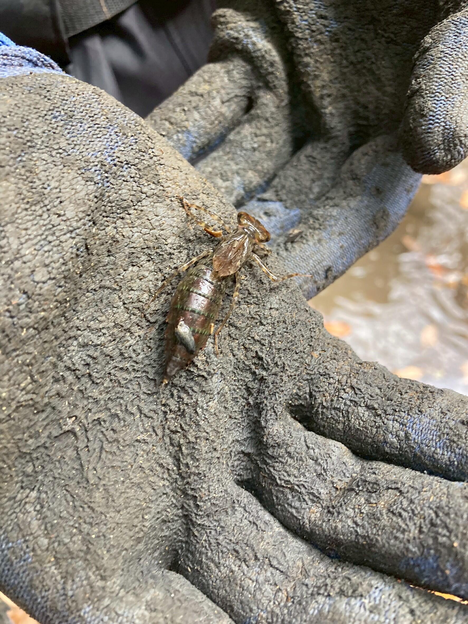 数時間のタモ網を使った調査で、ミズカマキリ、マツモムシ、ギンヤンマのヤゴ、シオカラトンボのヤゴなど水生昆虫を多く確認できました。