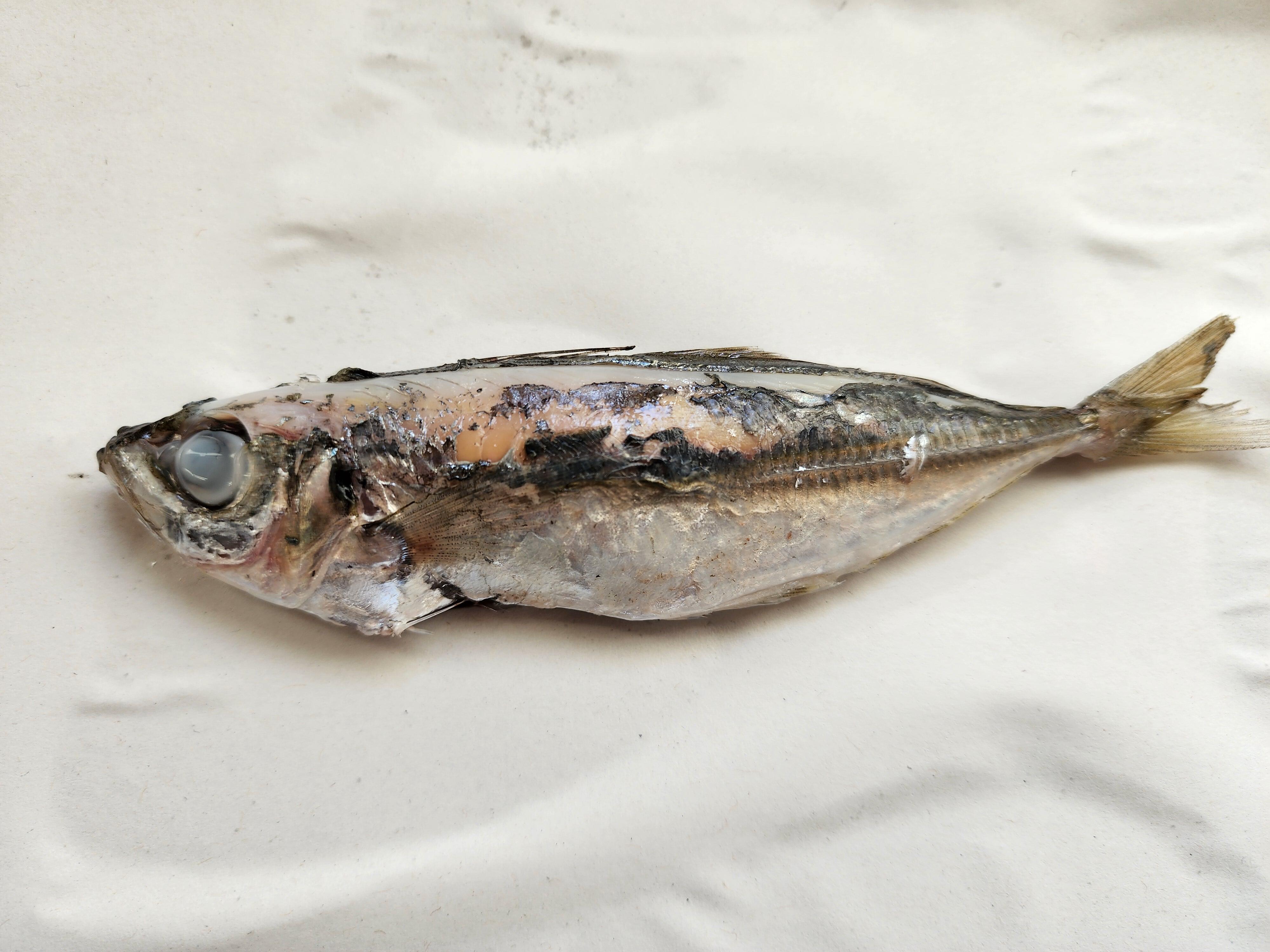 準備物:豆アジ(マアジの幼魚。10匹100円程。購入後2日以内には使用したい)、バット、ピンセット、解剖ばさみ、ビニール手袋、(教員の手元をプロジェクターで投影するための機材)
