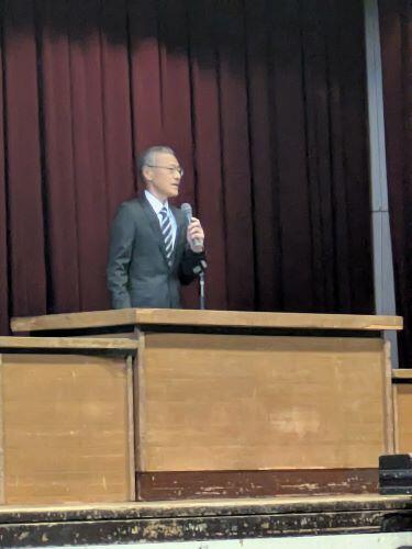私からは「夢なき者に成功なし」という話をしました。全文は「夢なき者に理想なし。理想なき者に計画なし。計画なき者に実行なし。実行なき者に成功なし。ゆえに夢なき者に成功なし」となっています。これは今まで校長を務めた学校でも年度当初に必ず生徒たちに伝えてきたことで、「夢(=方向性)」が決まったら「理想(具体的な目標)を描く、具体的な目標が決まったらそれを実現できる「計画」を立てる、計画を立てたら「実行」する、実行すれば夢を実現できる可能性が高まるということだと私は解釈しています。ちなみに午後からの入学式でも同じ話をするつもりです。