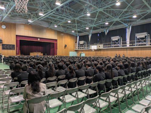 始業式後に2年生はそのまま残って学年集会を行いました。学年主任や担任の先生から進路、生活、体育祭などについて話がありましたが、みんなとても静かに聞いていました。最後に一人の生徒が前で音頭を取って「やればできる!」と声高に気合入れていましたが、本当にその通りです。この「やればできる」については、機会があればまた私からも話をしたいと思っています。2年生の皆さん、とにかく実行あるのみですよ。