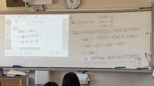 今日は2限目に2年生の数学の授業を見学に行きました。勉強していたのは等式・不等式の証明です。授業の冒頭で先生が「今日は校長先生が来られていますが、お名前覚えていますか?」と質問されましたが、誰も覚えてくれていませんでした(笑)。枚高生の皆さん、覚えてください。「浅田充彦」です。