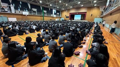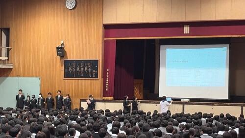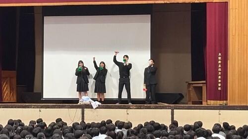 6限目に生徒総会と体育祭応援団の結団式を行いました。まず最初に生徒総会が行われ、生徒会から昨年度の決算などの報告があり、全員一致で承認されました。