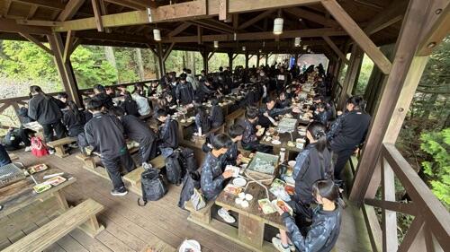 生徒たちは午後は班ごとにアスレチックで楽しみます。